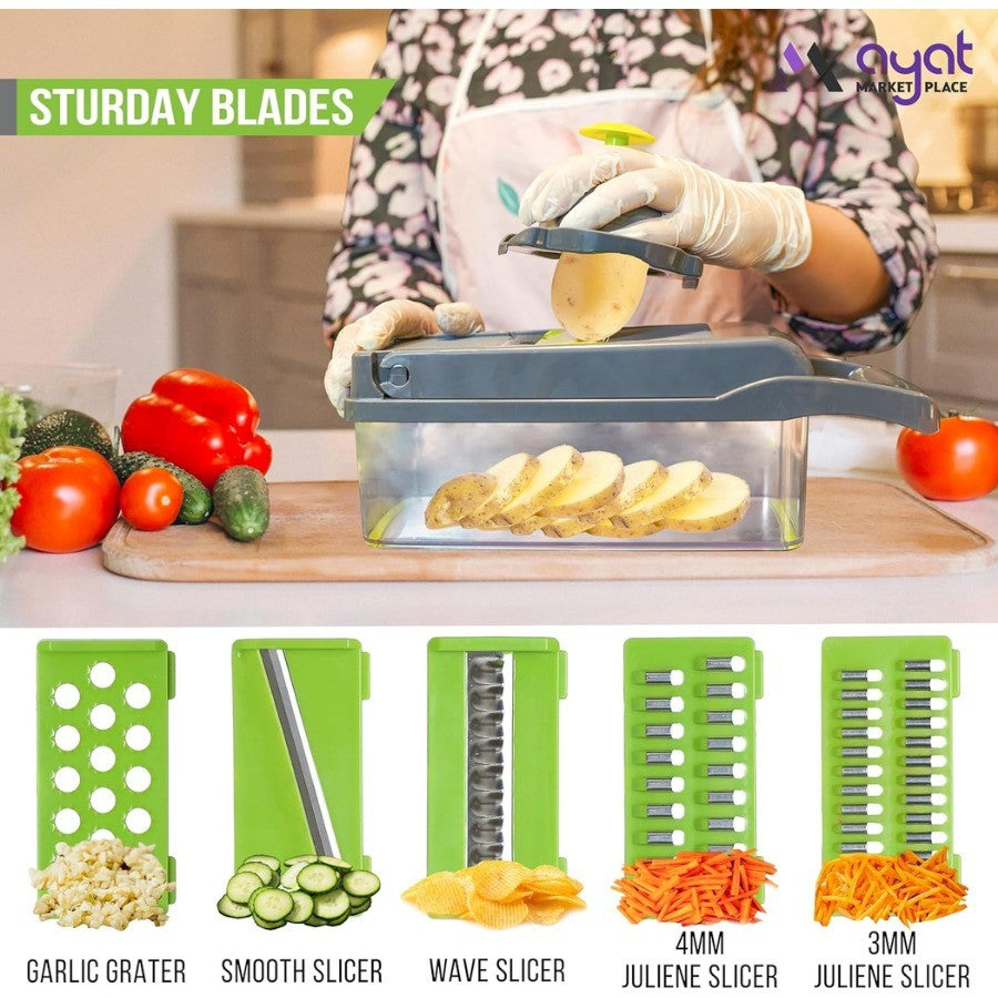 Facilite sua rotina na cozinha com este cortador de legumes 16 em 1, perfeito para quem busca praticidade, rapidez e organização ao preparar alimentos!